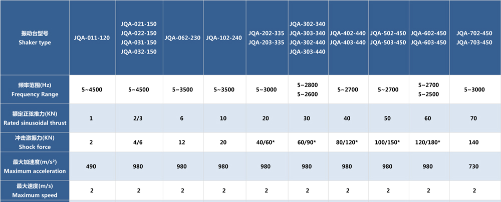 * 位移可選76mm或100mm.uDisplacement peak-to-peak value of  76mm or 100mm.